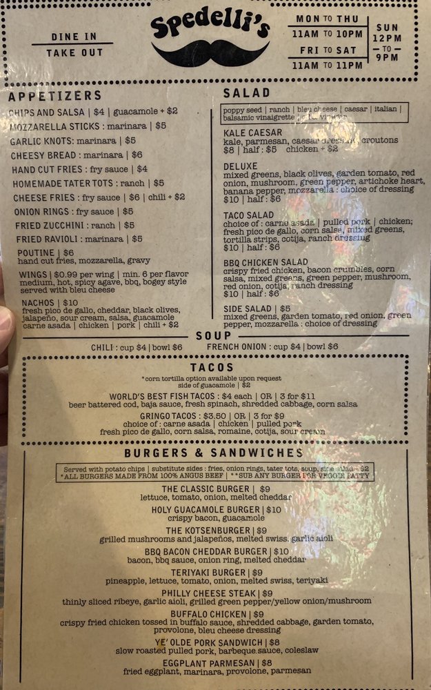 With services like takeout, delivery, and a full bar, Spedelli’s ensures a seamless dining experience. Don’t forget to ask about their daily specials!